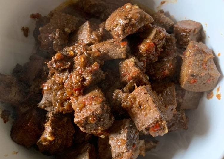 - Ati sapi direbus lalu dipotong-potong dadu